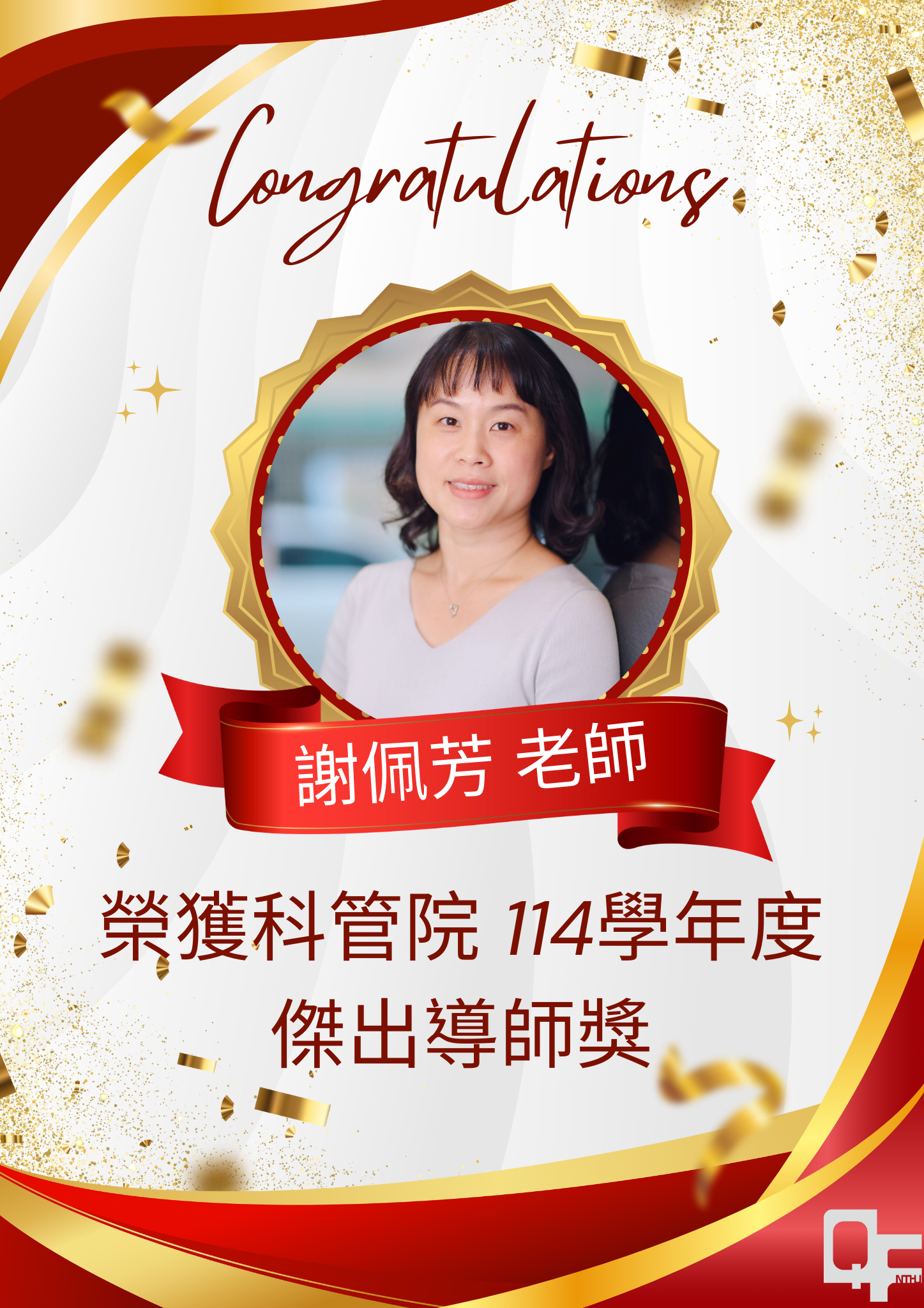 【恭賀】本系謝佩芳老師榮獲科管院114 學年度傑出導師獎